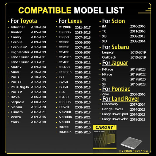 Premium Activated Carbon Cabin Air Filter for Toyota, Lexus, Subaru, Jaguar, Land Rover & More - Enhance Your Air Quality!