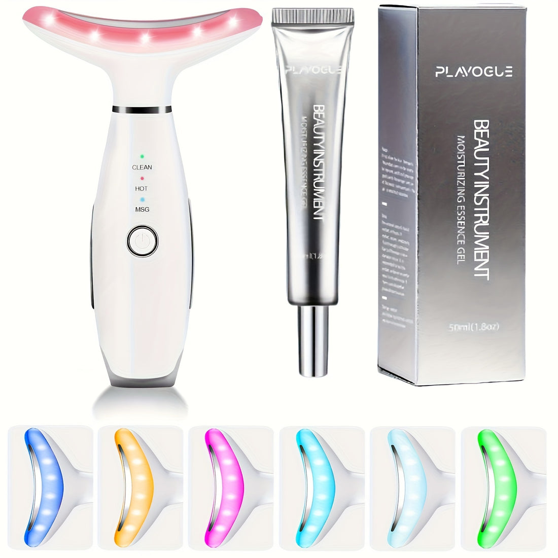 This triple-color LED neck and face massager features a rechargeable lithium battery with USB charging,...