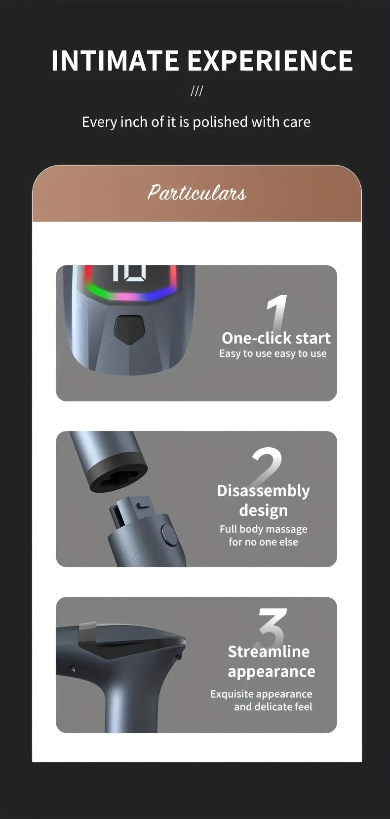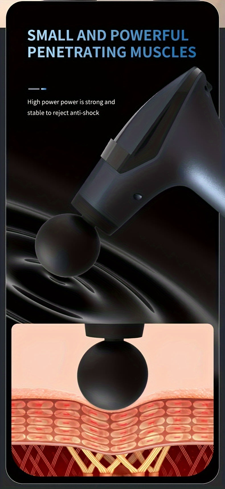 This USB-rechargeable massage gun features a lithium-polymer battery, operating at ≤36V. Detachable and multi-functional, it’s designed for full-body muscle relief and relaxation.