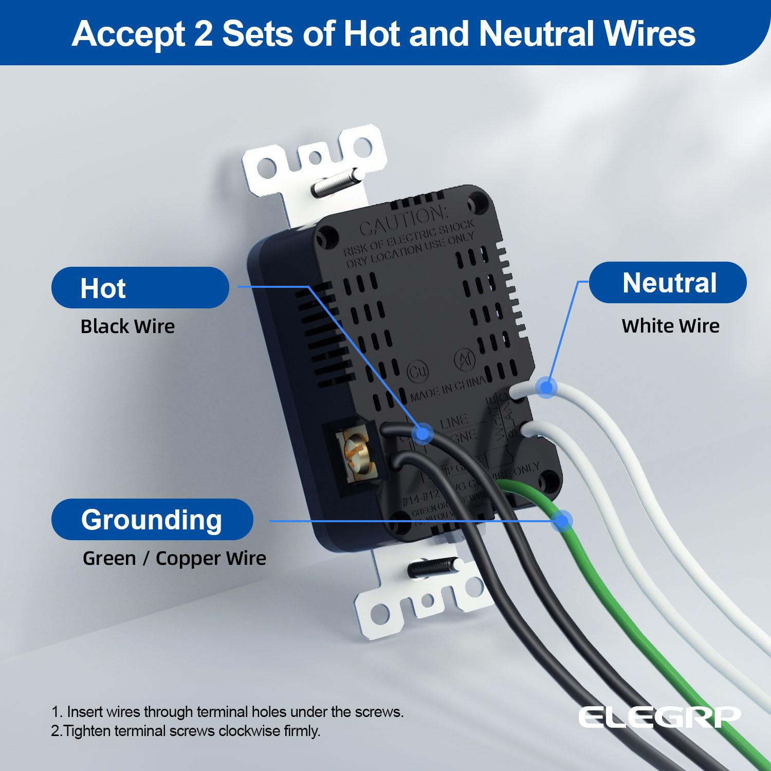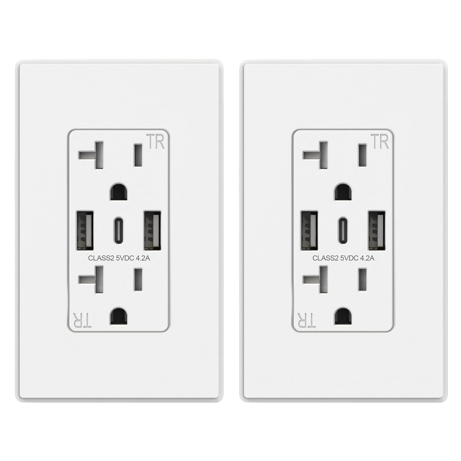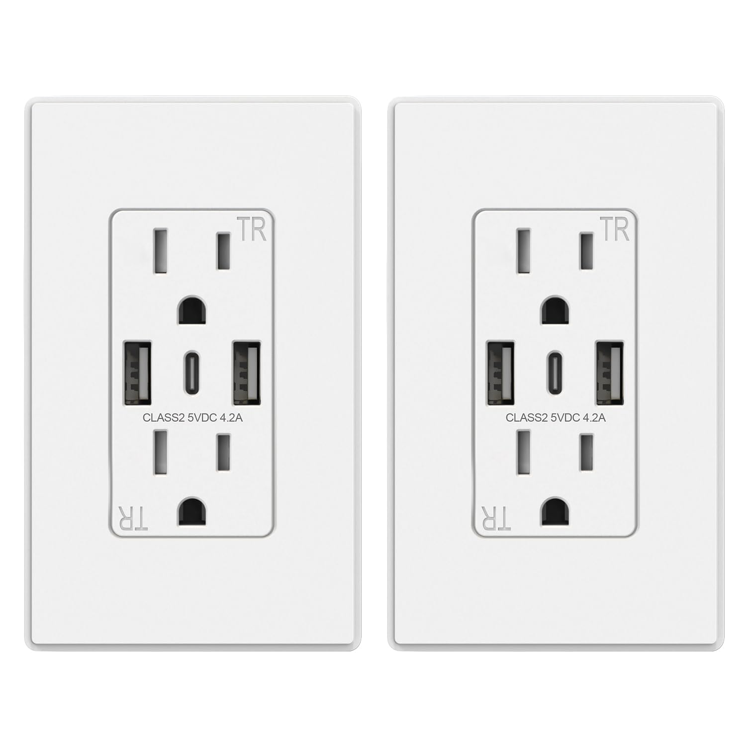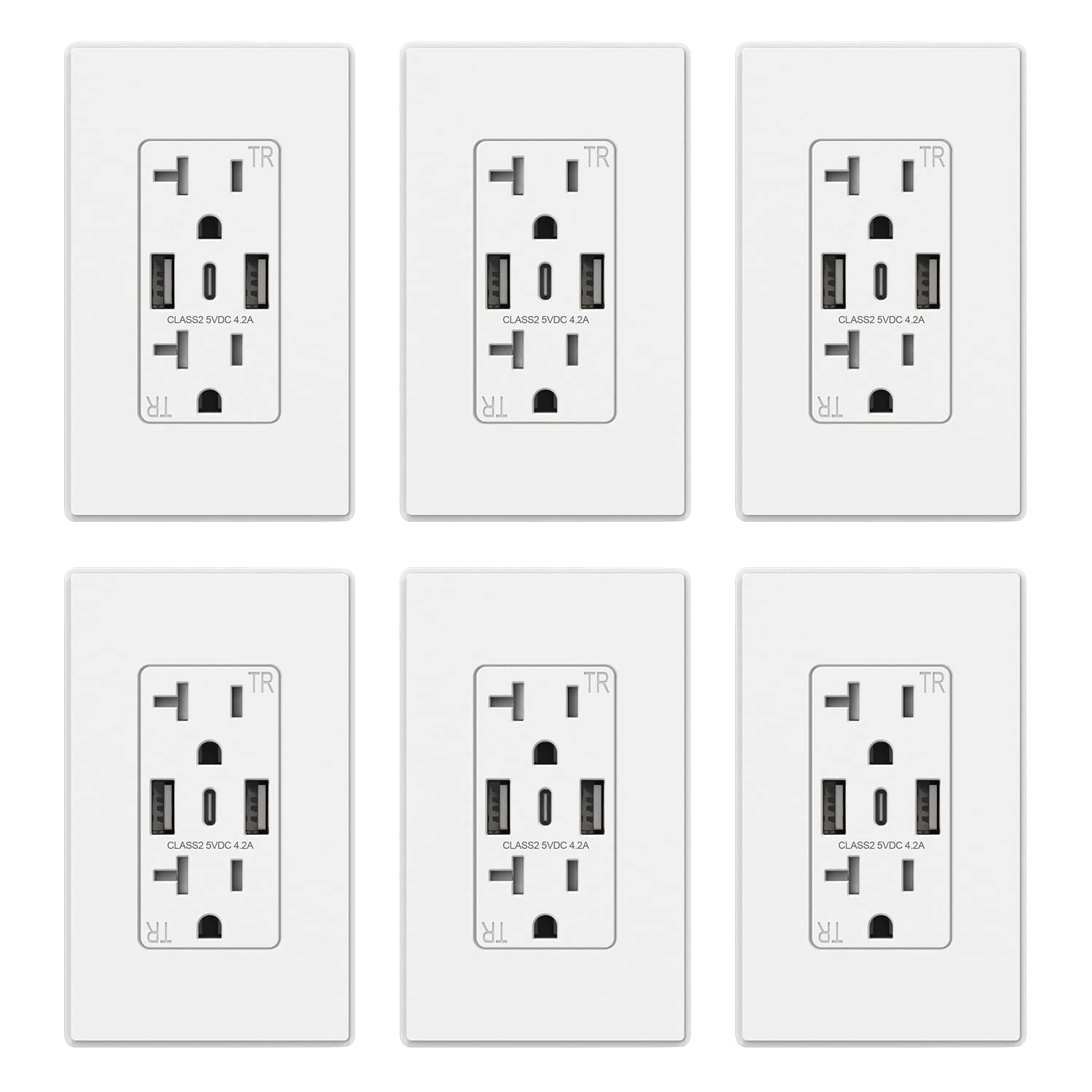 3-Port USB-C Wall Outlet Receptacle, Matte Black, 15 Amp, TR Tamper-Resistant, Screwless Wall Plate Included, UL & CUL Listed, Single Pack