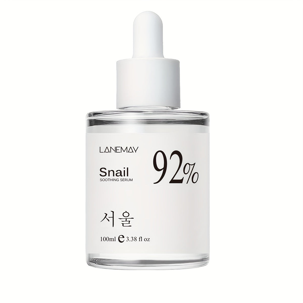This Lanemay snail mucin serum contains AHA for moisturizing and replenishing the skin. Scented and suitable for all skin types, it comes in drop form and is designed for facial use. Made in Guangdong, China.