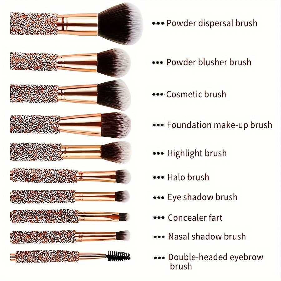This 10-piece makeup brush set features soft nylon bristles and durable ABS plastic handles for precise and comfortable application. The wand-style brushes are unscented and suitable for normal skin, making them perfect for everyday use and professional-quality makeup results.