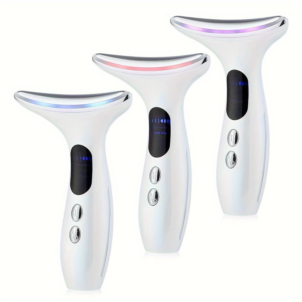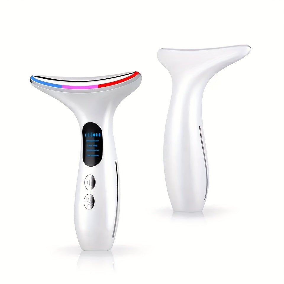This tricolor LED face and neck massager features a 400mAh rechargeable lithium battery with USB charging. Unscented and suitable for all and combination skin types, it’s ideal for daily facial and neck care.
